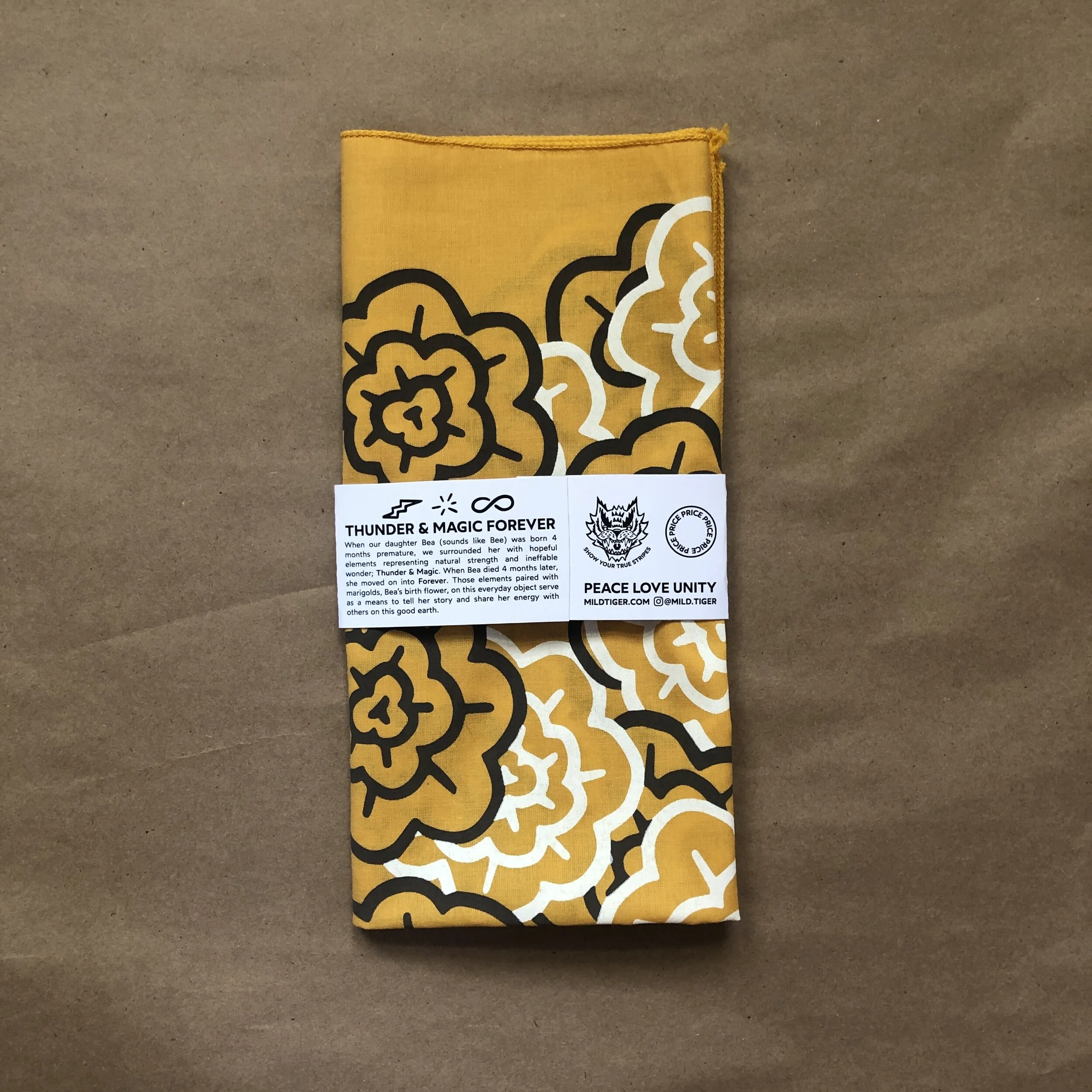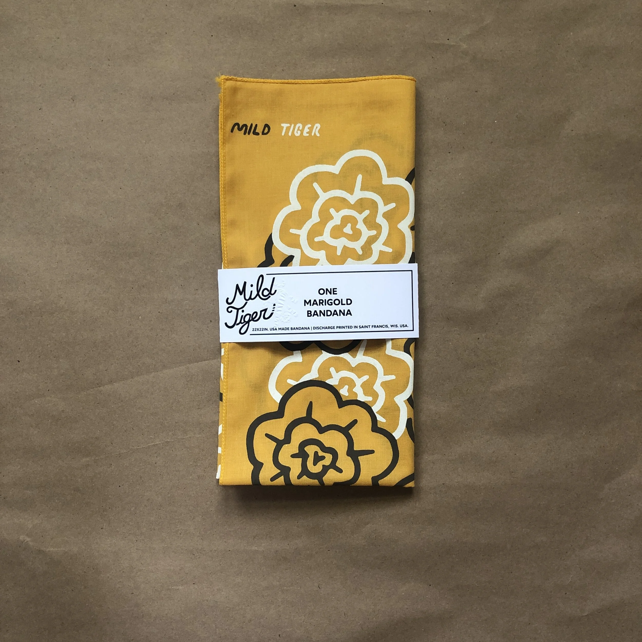 I wanted to do something with that little field. Make some art you could use everyday. Not be afraid of letting a little life happen to it. Something you could let age with you. So I went with a bandana. USA made cotton. Printed here in our fair city by the wonderful folks at Orchard Street Press. Packaged by hand by me at Mild Tiger HQ with recyclable paper packaging printed up by the wildly talented team at Clark Graphics on Milwaukee’s East Side. Every inch adorned with a little bit of goodness. Purchase your own at my etsy shop or enjoy the free looks right here.